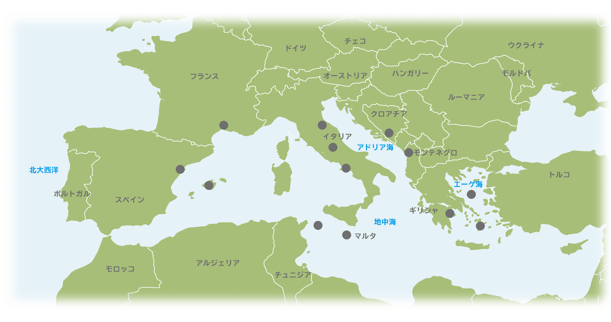 風光明媚なヨーロッパの都市が点在する地中海とサントリーニ島やミコノス島など、