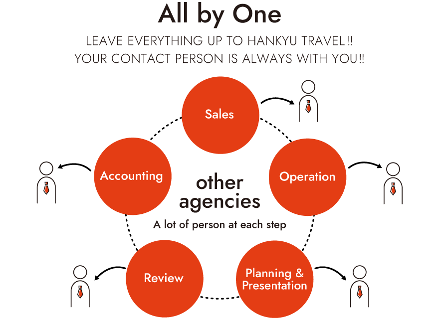 Guided tours, Transfer services, Accommodations, and more! Your satisfaction is our priority. We will handle your requests with great care from the small details to the big picture. Each step of the way will be delivered with quality. For the success of your event in Japan we will customize it to meet your needs.