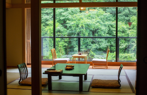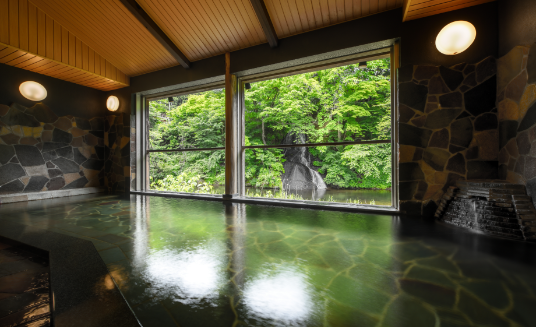 A gender-separated rock bath that has its glass doors open during spring to autumn to create a semi-open-air bath. Enjoy the beautiful landscapes of Toyosawa River.
