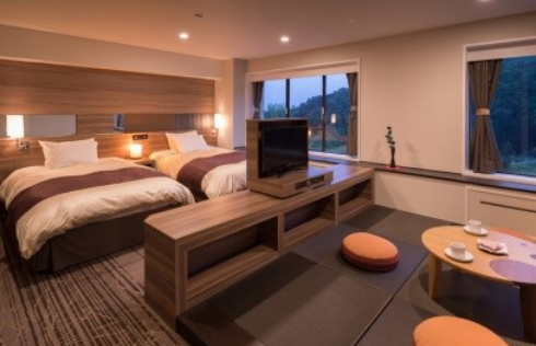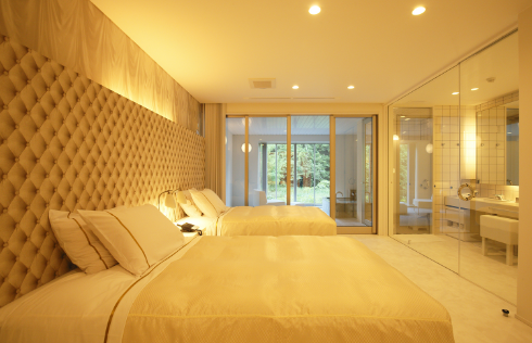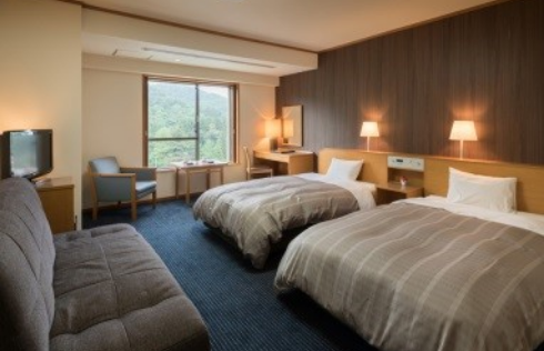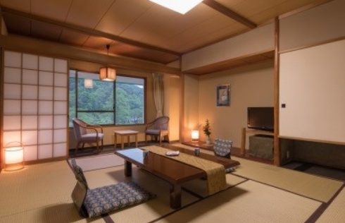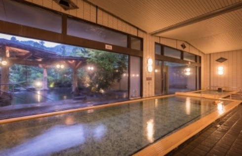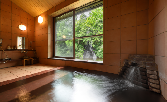 A mixed grand open-air bath that has a spacious feel and a beautiful outlook of the landscape. To answer the requests of women who would like to bathe without worry, there is also a women-only hour. Women-only hour: 8:00 p.m. – 9:00