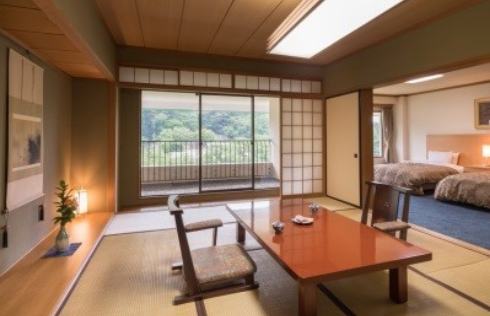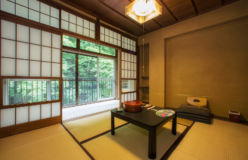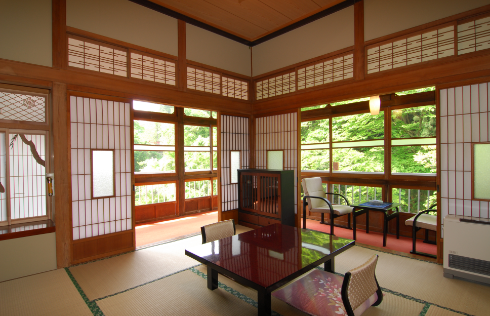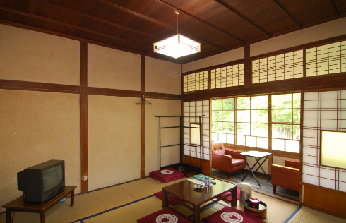 Kikusuikan, with its thatched roof. continuing from the end of the Edo period. Here, a traditional Japanese atmosphere and a relaxing accommodation where people’s hearts connect still remain today.