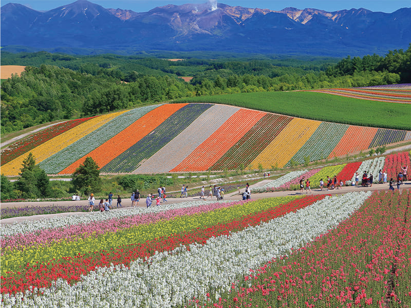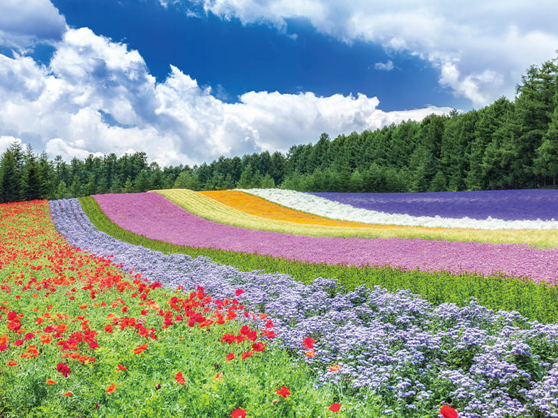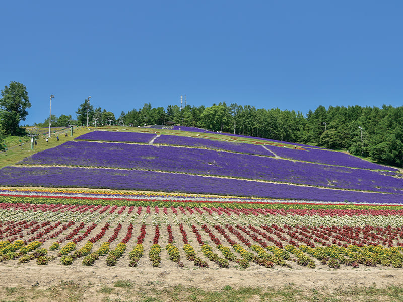 斜面一面に広がるラベンダー畑と色とりどりの季節の花を楽しめます。なかでも中富良野町でしか見られない「白いラベンダー」は必見です。