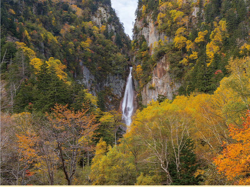 大雪山は、複数の山々を総称したもの。ナナカマドやシラカバなど葉の色が赤や黄色に変わる木々と、エゾマツやハイマツなどの常緑樹が混在する紅葉が楽しめます。