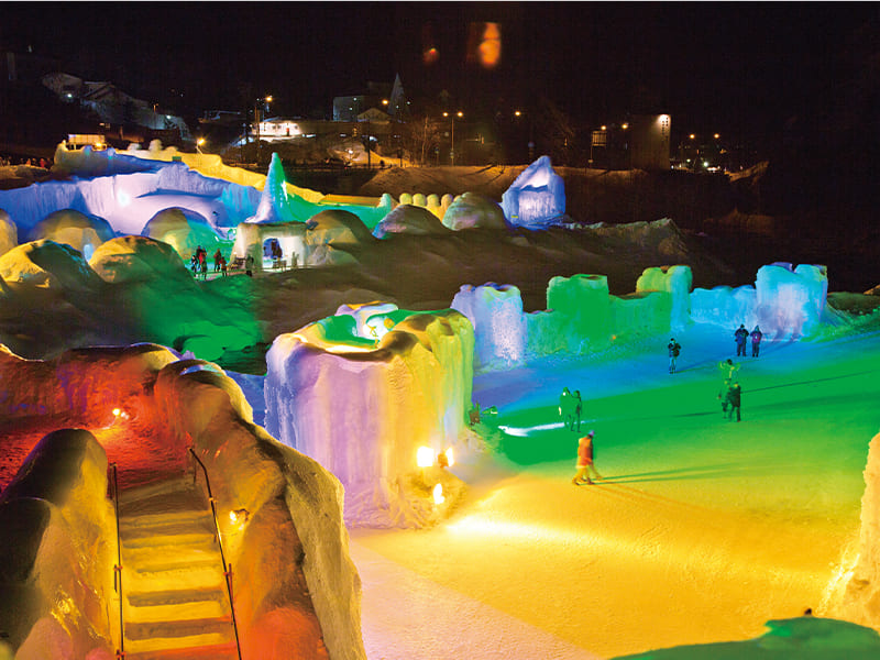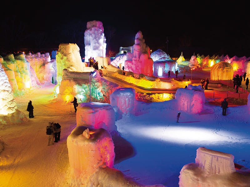 北海道ならではの厳しい寒さを活かした一大イベントです。氷の彫刻や花火などが、冬の層雲峡を彩ります。