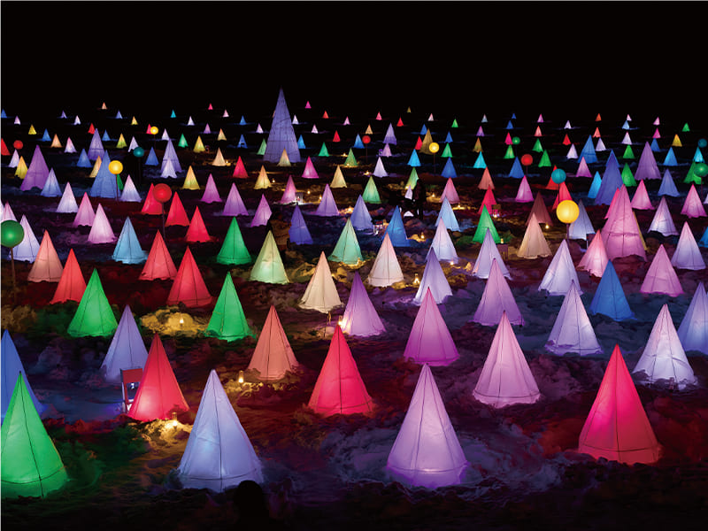 子どもから大人まで楽しめる体験型会場。雪のすべり台やスノーラフトなど、アクティブなアトラクションが豊富。屋内には飲食・休憩スペースもあり、寒い日でも安心。特にファミリー層に人気です。