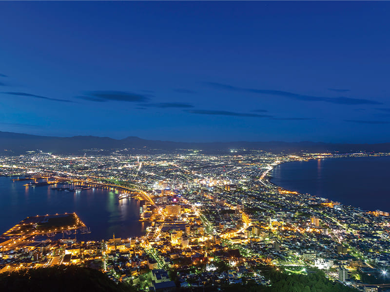 標高334mの函館を代表する山。山頂からは美しい街並みを一望でき、とくに冬の夜景は「百万ドルの夜景」と称されるほどです。