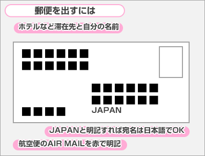 日本への国際電話は直通とオペレーターを通す方法があり、直通の方が安くかけられます。ハガキは10日前後で日本に着くので、おみやげのひとつとして送ってみては。