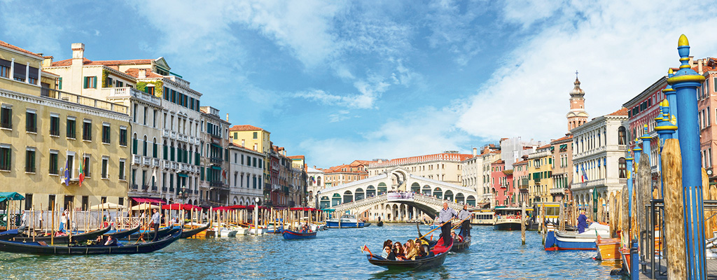 まるで蜃気楼のように海上に浮かぶ水の都、ベネチア。ゴンドラの行き交う大運河が、エキゾチックな風情を漂わせます。