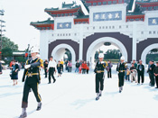 忠烈祠は中華民国の殉職者を奉祀する祠です。日本統治時代に建立された台湾護国神社の跡地を中式宮殿式建築に改築したもので、建国や革命などにおいて戦没した中国革命家や中国兵士の英霊を祀っています。広大な敷地に大殿、山門、大門牌楼が一直線に並ぶ様は、圧巻の一言です。そんな忠烈祠の一番の見どころは、なんといっても衛兵交代の儀式。厳格な訓練を受けた陸軍・海軍・空軍のエリート兵士たちが、1時間交代で大門と大殿を守ります。衛兵たちが一糸乱れず行進する様は、歴史を感じさせる建築物とあわせて、静粛で厳かな空気を感じるでしょう。台北に来たら、一度は見ておきたいスポットです。