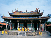 龍山寺は、1740年に完成した歴史あるお寺。仏教・道教・儒教の中国の三大宗教をはじめ、100以上の神仏を祀っているありがたい場所です。そんな龍山寺は、台湾随一のパワースポットとして知られ、御利益を求め、地元の人々や観光客がひっきりなしに訪れます。熱心なローカルに交じって、台湾の神々に祈りを捧げてみるのも興味深い体験です。もちろん、社殿の芸術的価値も無視できません。敷地内の建造物には、随所に精緻な細工が施されており、一つ一つじっくり鑑賞しようとすると、いくら時間があっても足りないくらいです。そんな龍山寺では、年間を通じさまざまな祭典も開催されています。もしタイミングが合えば、珍しいお祭りを見学するのもいい考えです。