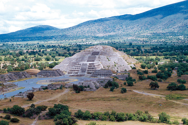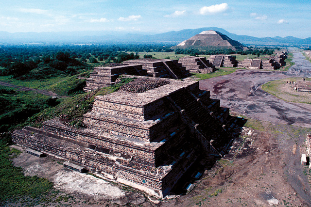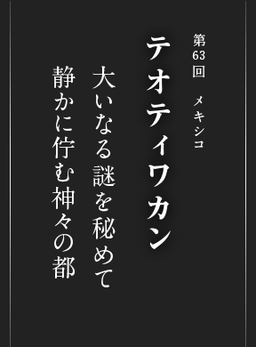 紀元前2世紀〜6世紀、メキシコ中央高原で繁栄した古代メソアメリカ最大の宗教都市国家。最盛期の人口は10万人とも20万人ともいわれ、当時の東ローマ帝国の都コンスタンティノープルにも匹敵する規模を誇っていましたが、600年頃に突然滅亡。北方民族襲来説、火山噴火説などその原因には諸説あり、真相は今もって明らかではありません。