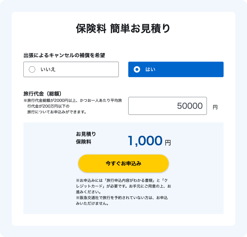 また、最低保険料は1,000円となります。 - ■同行者10人の旅行までが本保険の対象です。