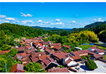 標高約 500m の高原上に忽然と出現する「赤い町並み」。