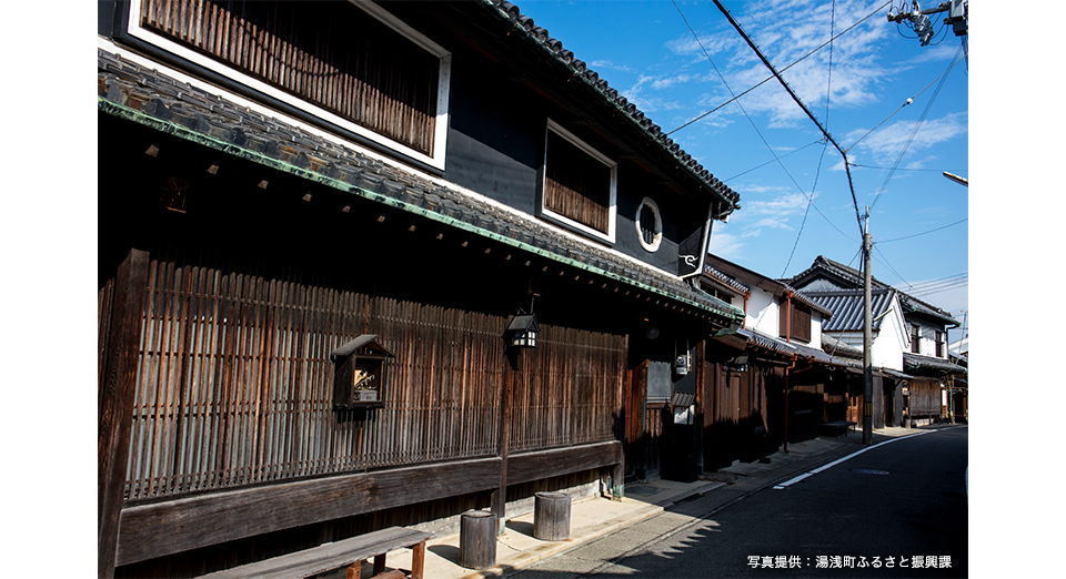 醤油の醸造業で栄えた町並みには、重厚な瓦葺の屋根と繊細な格子が印象的な町家や、白壁の土蔵が建ち並ぶ。