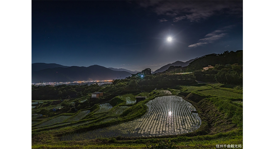 中でも、歴史的に文学や絵画の題材となってきた 「 姨捨山に照る月」、「 田毎の月」は、日本を代表する月見の名所である。