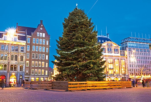 - クリスマスマーケットの中心はダムラック大通りで行われ、屋台が連なりグルメ・お土産などで賑わいます。「アムステルダム・ライトフェスティバル」のイベントがクリスマス時期に同時開催され、運河沿いを中心にクリスマスムードの街を鮮やかに彩ります。