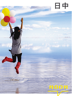 4WDで静かに美しく見えるポイントまで現地のドライバーさんが案内してくれ、水と空が鏡となり不思議な世界を作ってくれる。写真やT.Vで見たトリック撮影に夢中になり、子供に戻ったようにカメラにおさめる。ランチはテーブルとイスを水面に並べピクニック気分!おいしくないはずありません。朝日、夕焼け、そして星空と暗闇の中のライトトリックの写真、もう本当に満喫させていただきました。 B.K様 |