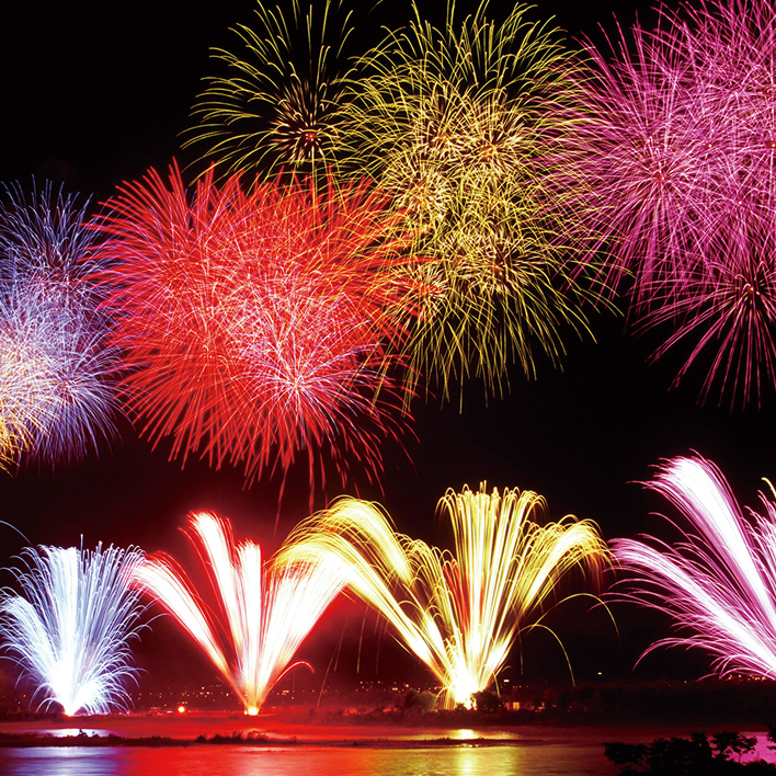 長岡花火は慰霊・復興・平和への祈りを込めた花火大会で、2日間の日程で開催されます。約102万人が観覧する日本最大規模の花火大会です。また、長岡花火は全国有数の打ち上げ敷地を誇ります。信濃川の広大な河川敷を利用できるため、他の花火大会では出来ないビックスケールの花火が打ち上げられます。