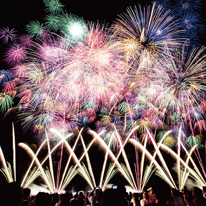 大曲、土浦とならぶ日本三大花火大会のひとつ、長岡まつり大花火大会。本大会の見所は、開花幅約650mの超大玉の正三尺玉をはじめ、音楽に合わせた様々なスターマイン、尺玉100連発など。約2万発もの花火が夏の夜空を彩ります。今年度は例年とほぼ同等の規模で開催を予定しています。