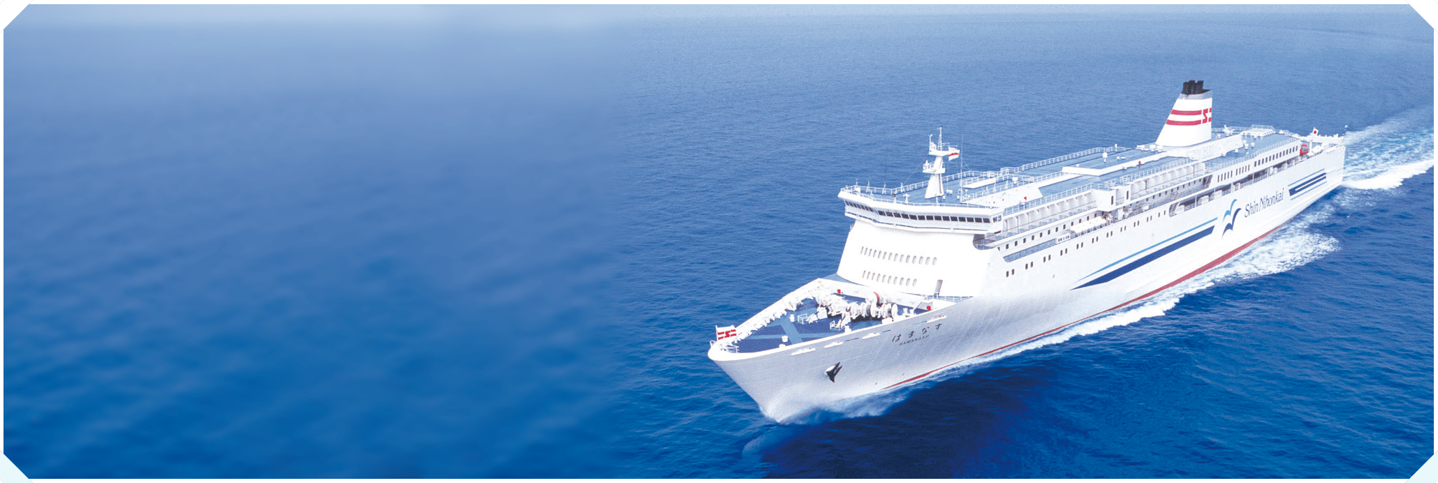舞鶴-小樽の日本海側を通る「はまなす」「あかしあ」。16,897tもの巨大船が30.5ノットの高速で航行します。晴れた日にはオープンデッキで日本海の風を感じ、ゆったりと船旅をお過ごしいただけます。