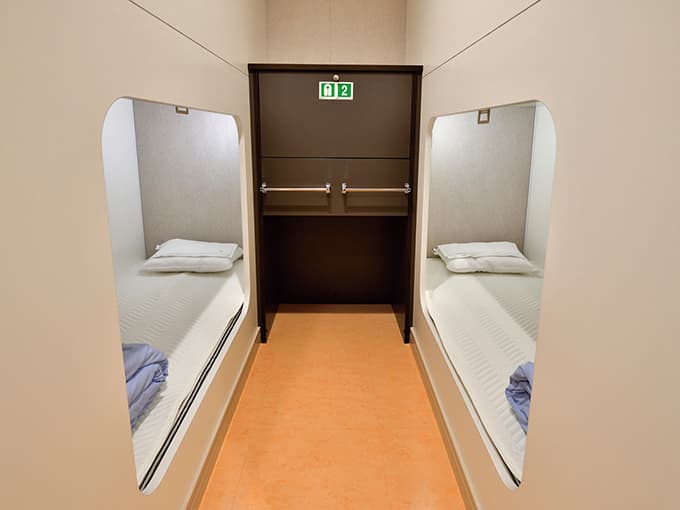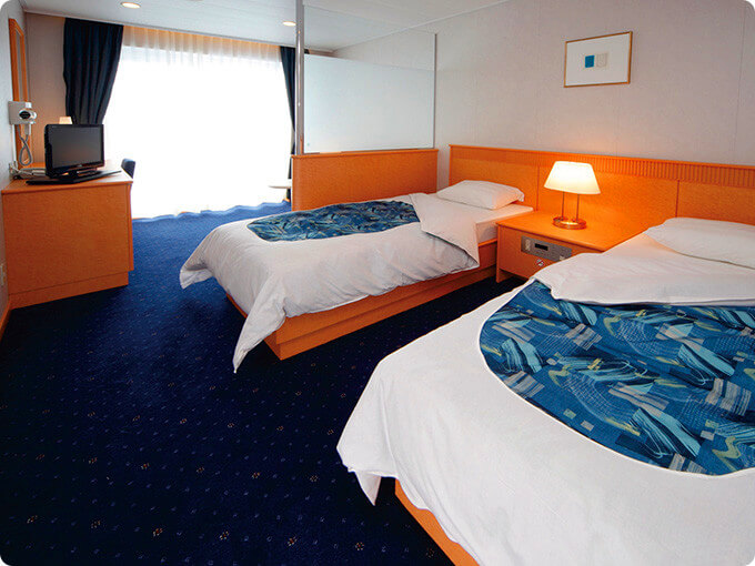 神戸-大分航路の「さんふらわあ ごーるど」「さんふらわあ ぱーる」には、限定のキャラクタールームの他に、プライベートベッドルームがあり、最新の設備でゆっくりと寛げる空間があります。お一人でも、ファミリーでも楽しめる設備が揃っています。