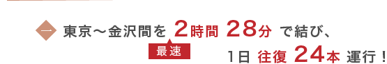 高速走行に最適な先頭形状や日本の伝統的な「和」の色使いの車体が美しい北陸新幹線。和の価値や美意識を未来につないでいきたいとの思いから、選ばれた外観となります。