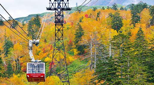 A大雪山ではロープウェイから紅葉を楽しむことができます。定山渓温泉や層雲峡温泉、登別温泉などの有名な温泉地で紅葉狩りと温泉を楽しむのもおすすめです。