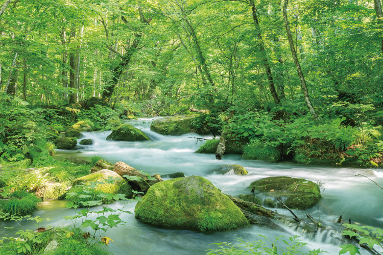 - 十和田湖を源に、深い木立のなかを清く流れる奥入瀬渓流。数多くの滝が続く潤いのある風景は、心をなごませてくれます。