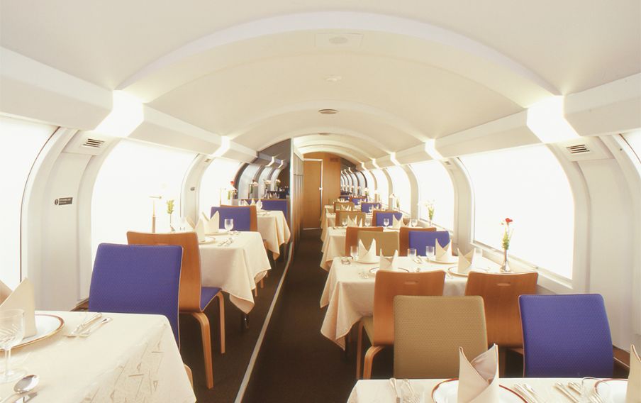 ドーム型の天井やこだわりのある内装など、寝台列車であることを忘れてしまいそうなラグジュアリーな空間が広がります。車窓から見る絶景と一緒に取る食事は、旅の思い出に残ること間違いなしです。