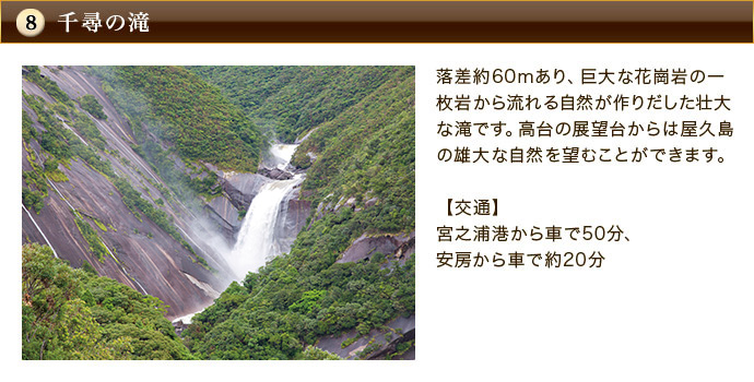 白谷川両岸の遊歩道を中心としたハイキングコース。屋久杉の巨木あり、滝あり、吊り橋ありと、屋久島の大自然を短時間で楽しめます。