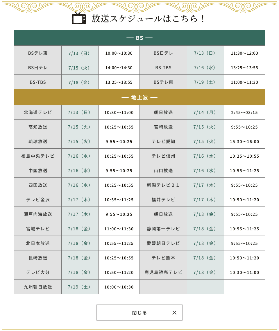 当ツアーの魅力をたっぷり紹介する放送スケジュールはこちら