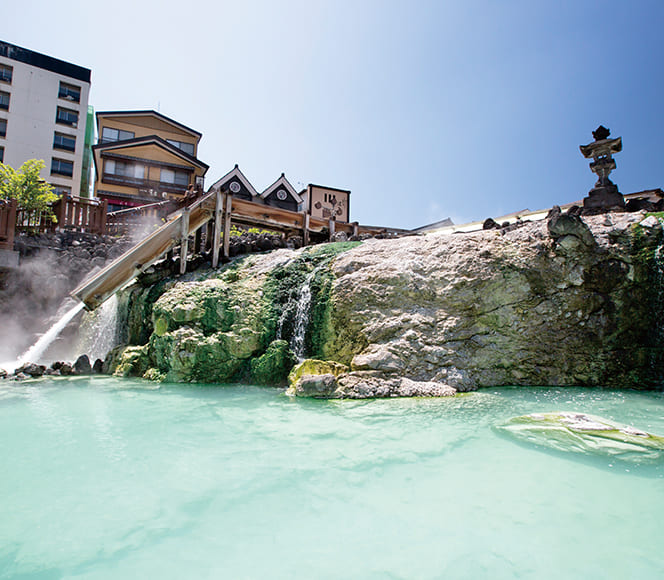 湯畑を中心に広がる人気温泉街。名物の湯もみ体験や温泉饅頭食べ比べなど温泉地ならではの楽しみ方を満喫できます。