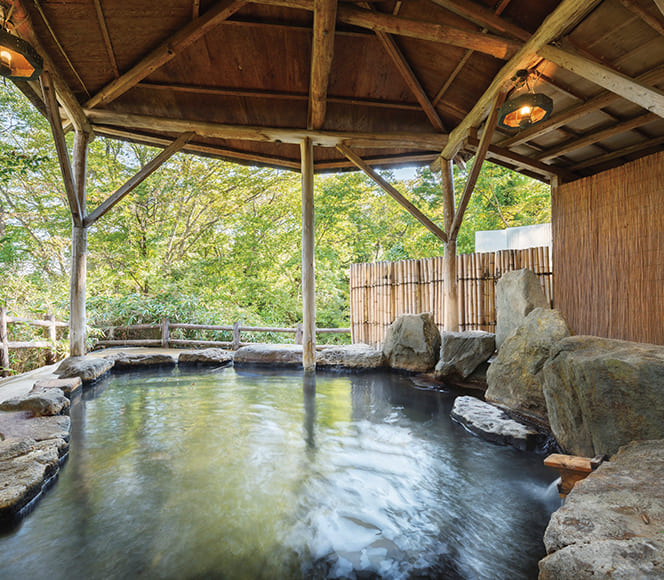 群馬県の山奥に大小の温泉旅館がひっそりと佇む静かでノスタルジックな温泉街。泉質から「美肌の湯」ともされています。渓流沿いにある旅館では、露天風呂の目下に四万川を楽しめます。