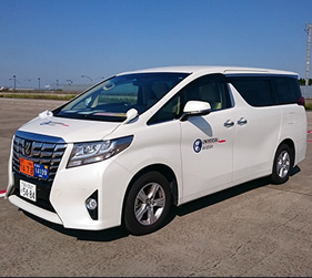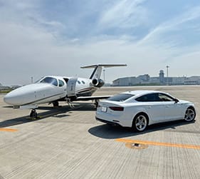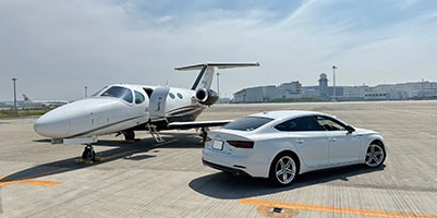 空港内走行専用車にお乗り換えいただき、プライベートジェット駐機場へ。