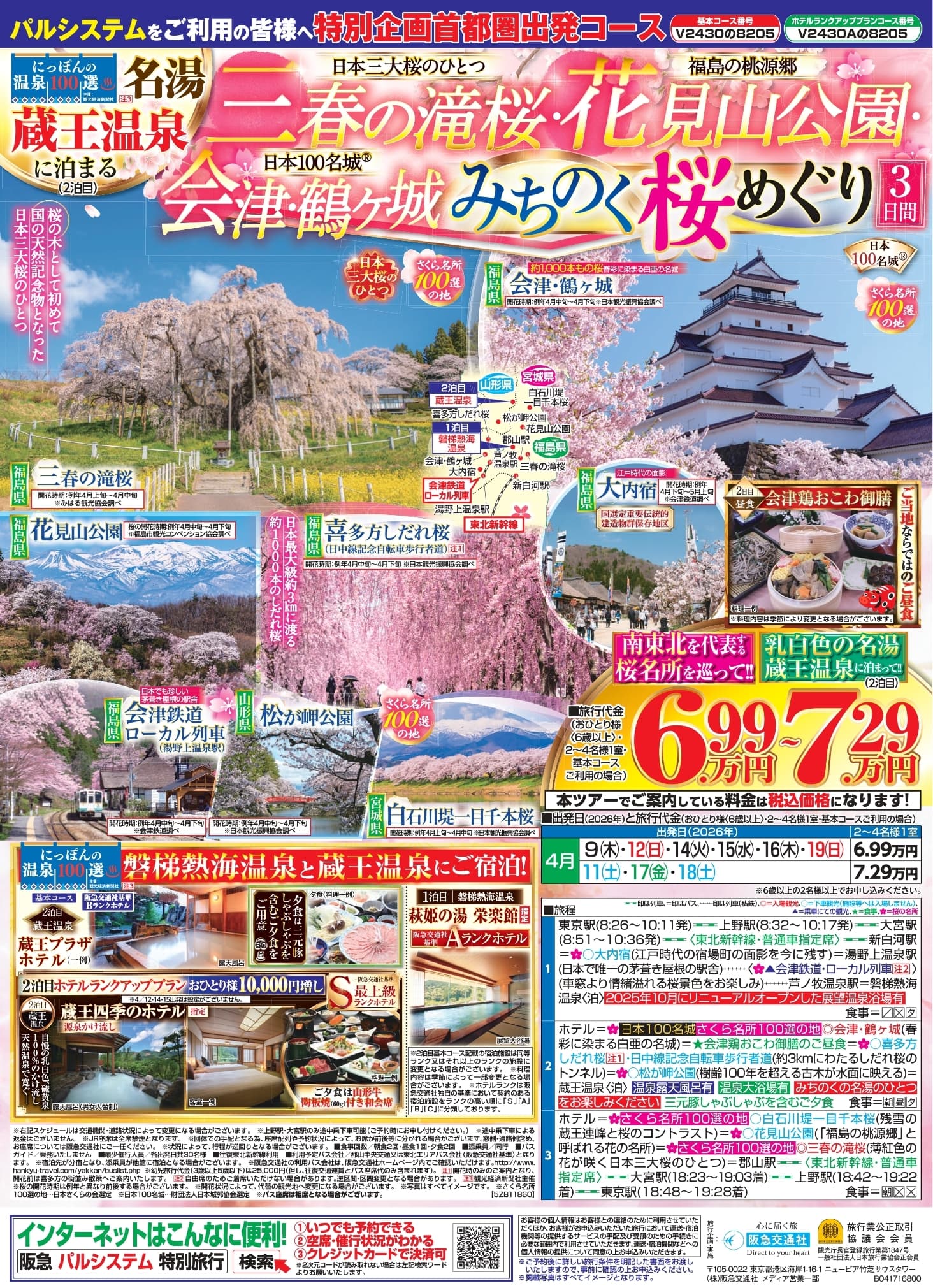 三春の滝桜・花見山公園・会津鶴ヶ城