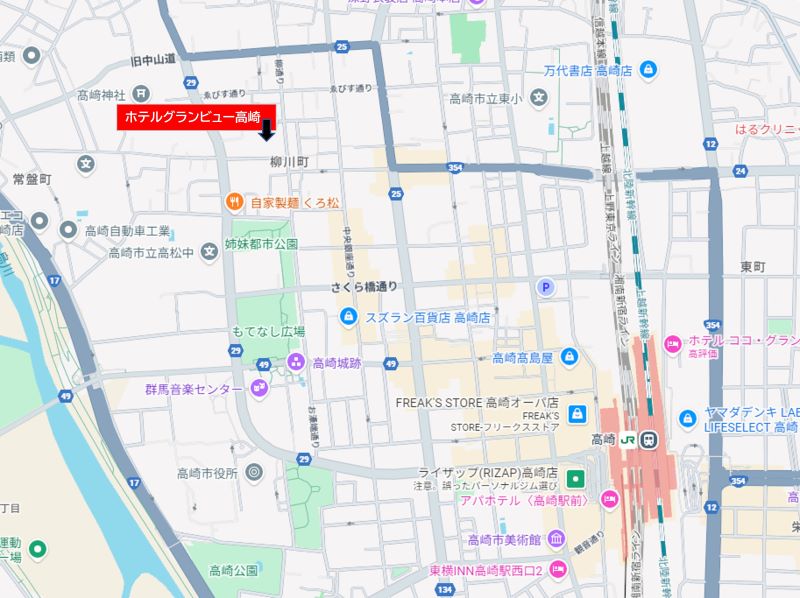 JR上越線・両毛線「高崎駅」からタクシーで約5分